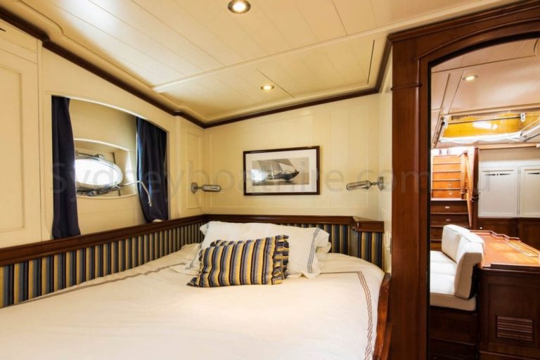 Considered as one of Sydney‘s most luxurious sailing yachts, Atao is an 82ft classic sailing yacht with a French flair. The combination of luxury and indulgence of this yacht meets the even highest of European sailing standards. She can fit up to 36 people on board, and comfortably accommodates 8 overnight. To stay overnight, you will find yourself in either one of the two double guest cabins, or the two single bunks onboard, each equipped with an ensuite.